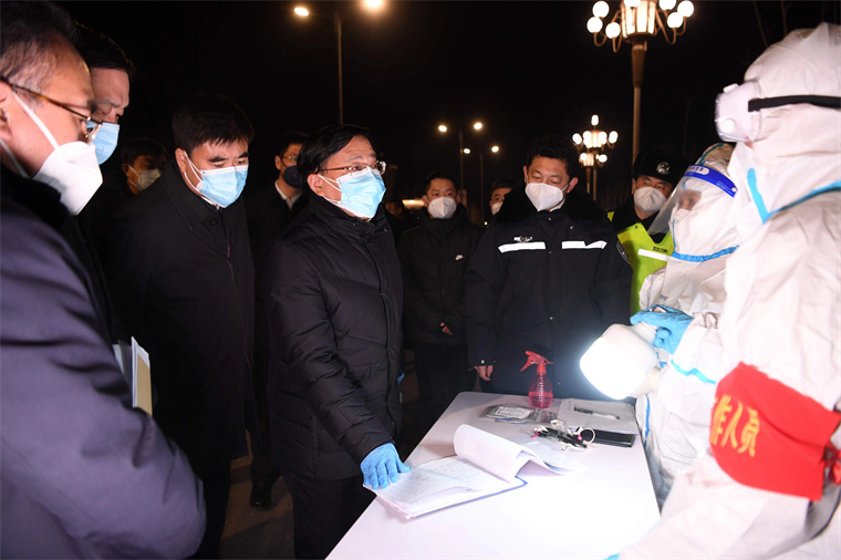 3月8日,韩俊在九台区四家子卡点检查疫情防控措施落实情况。宋锴 摄