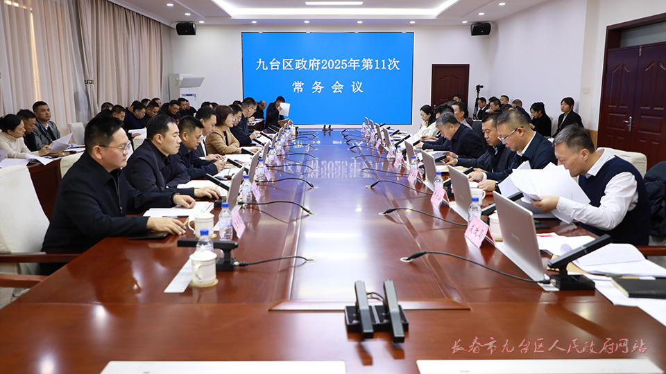 12月15日,九台区政府2025年第11次常务会议在区政府四楼西侧会议室召开。会议围绕当前重点工作进行安排部署,审议并原则通过了《2025年政府工作报告》《〈长春市九台区志(2001—2025)〉编修工作方案》《长春市九台区国民经济和社会发展第十五个五年规划纲要》以及《长春市九台区2025年国民经济和社会发展计划执行情况与2026年国民经济和社会发展计划的报告》等重要文件。
